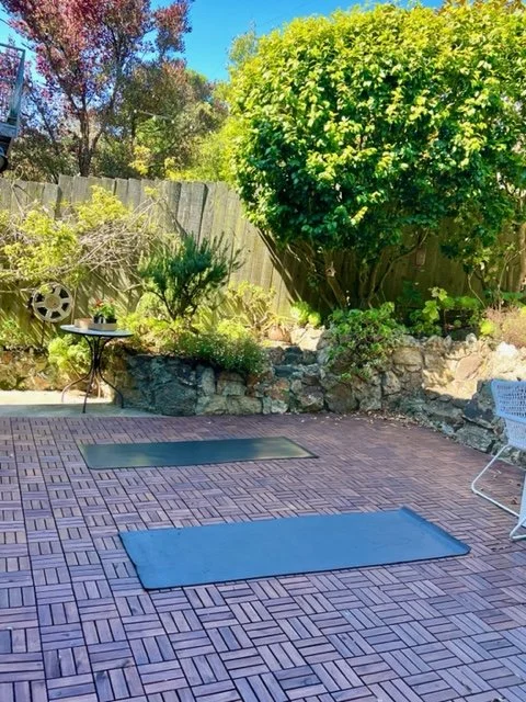 I offer 1:1 (or small groups) yoga sessions in the comfort of your home or in my beautiful garden in San Francisco.